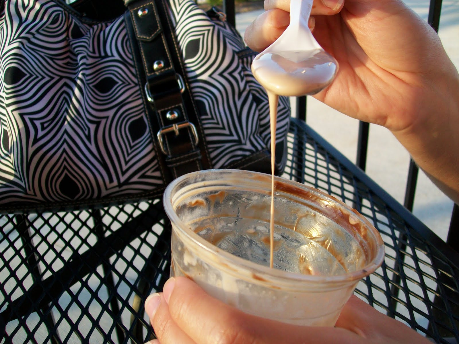 When we got our desserts, we were both a little disappointed. Matt asked for no whipped cream or cherry and received it anyway (although they did offer to make him a new one) and mine was extremely melty. And not in the less-fat-means-faster-melting. Because of the hot fudge and peanut butter (liquid toppings) mixed with the vanilla, it caused the custard to move more toward it's liquid state.
